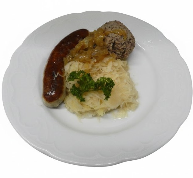 Pfälzer Teller (Bratwurst, Leberknödel, Saumagen)